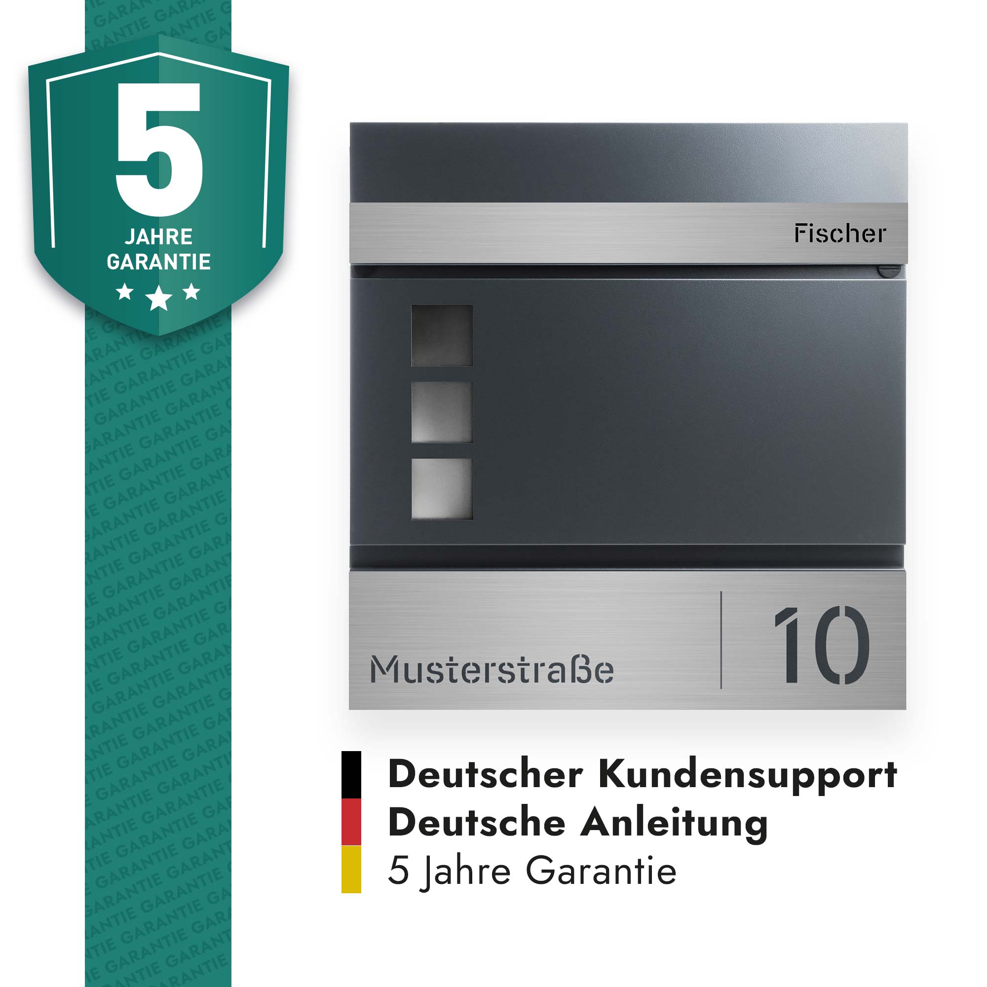 - Postkasten im Nordischen Design – Puristisch und modern in Anthrazit RAL7016 mit klarer Linienführung und drei Lichtfenstern