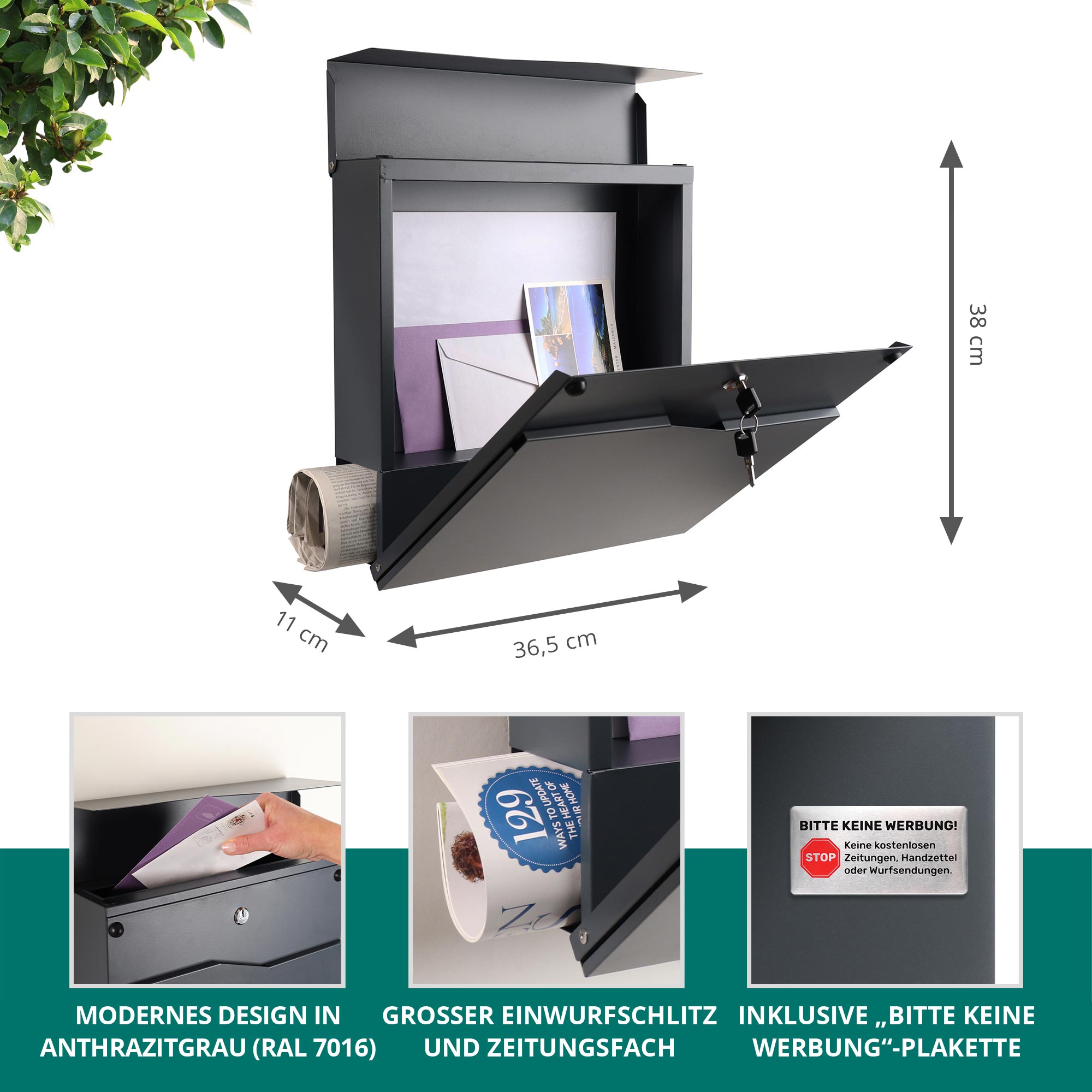 - Wetterfest und langlebig – Robuster Zinkstahl mit Pulverbeschichtung schützt Ihre Post bei Wind und Wetter zuverlässig