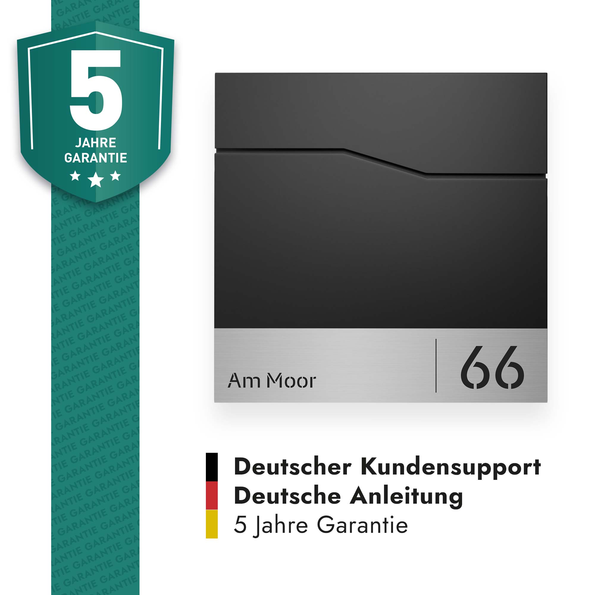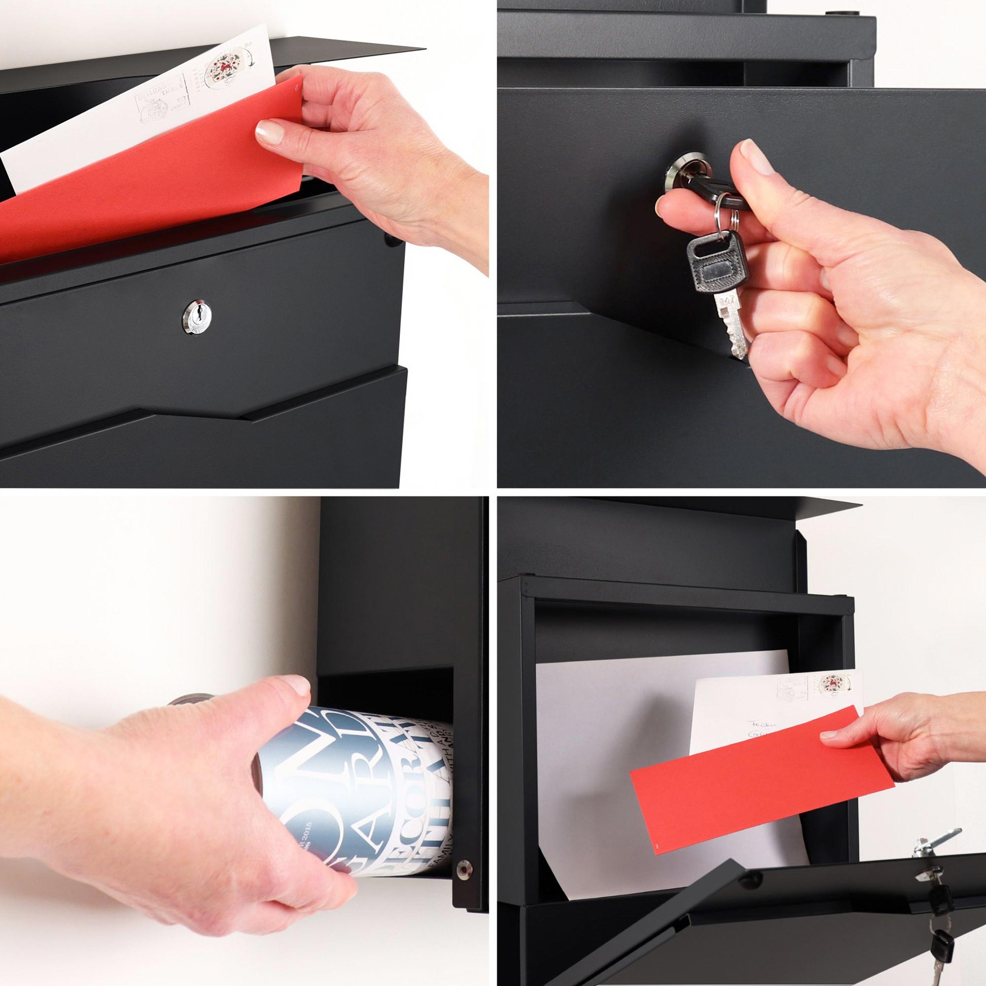 - Nordisches Design – Die minimalistische Form und die elegante schwarze Farbgebung (RAL9005) der Postbox harmonieren mit jeder Fassade
