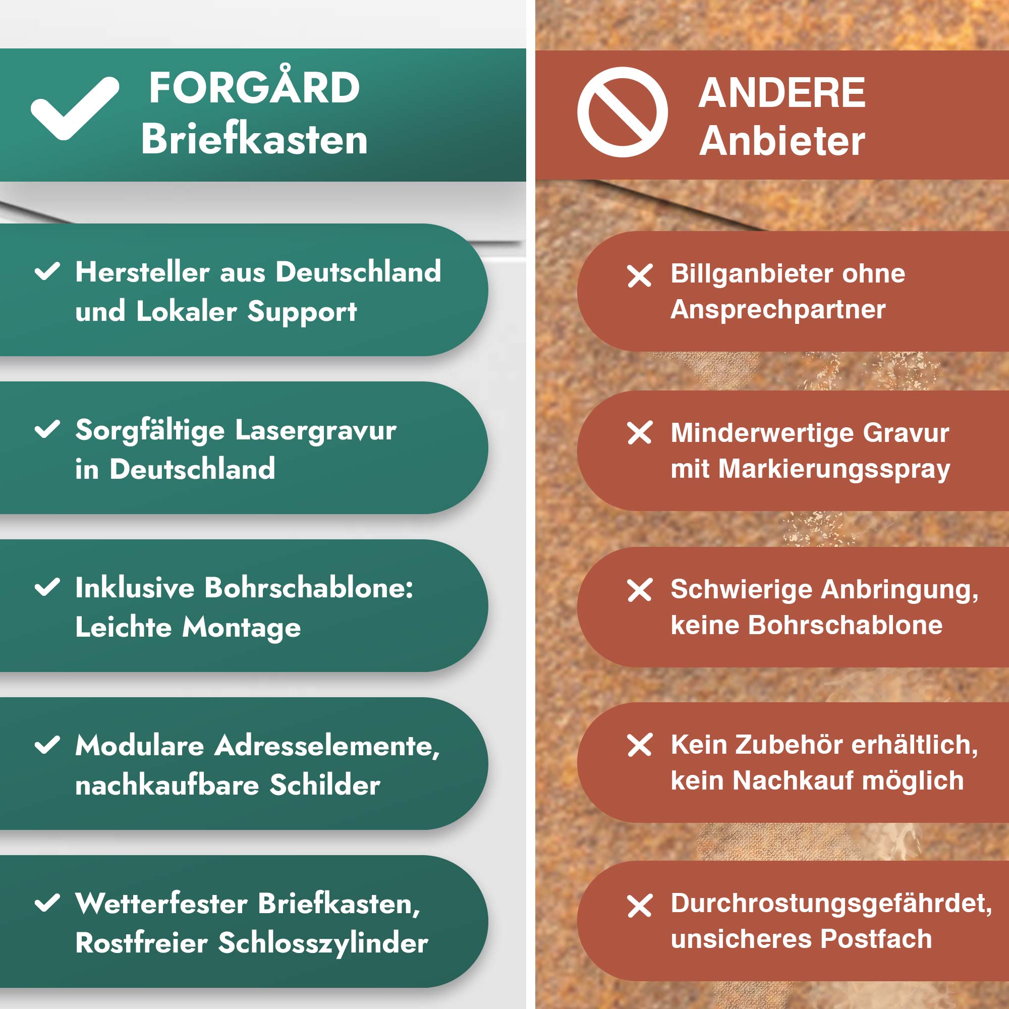 - Personalisierter Briefkasten – Zwei Plaketten mit individueller Gravur: Nachname, Straße und Hausnummer