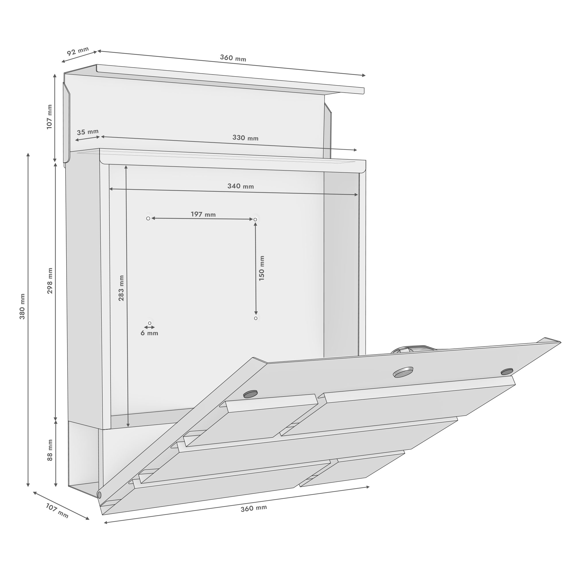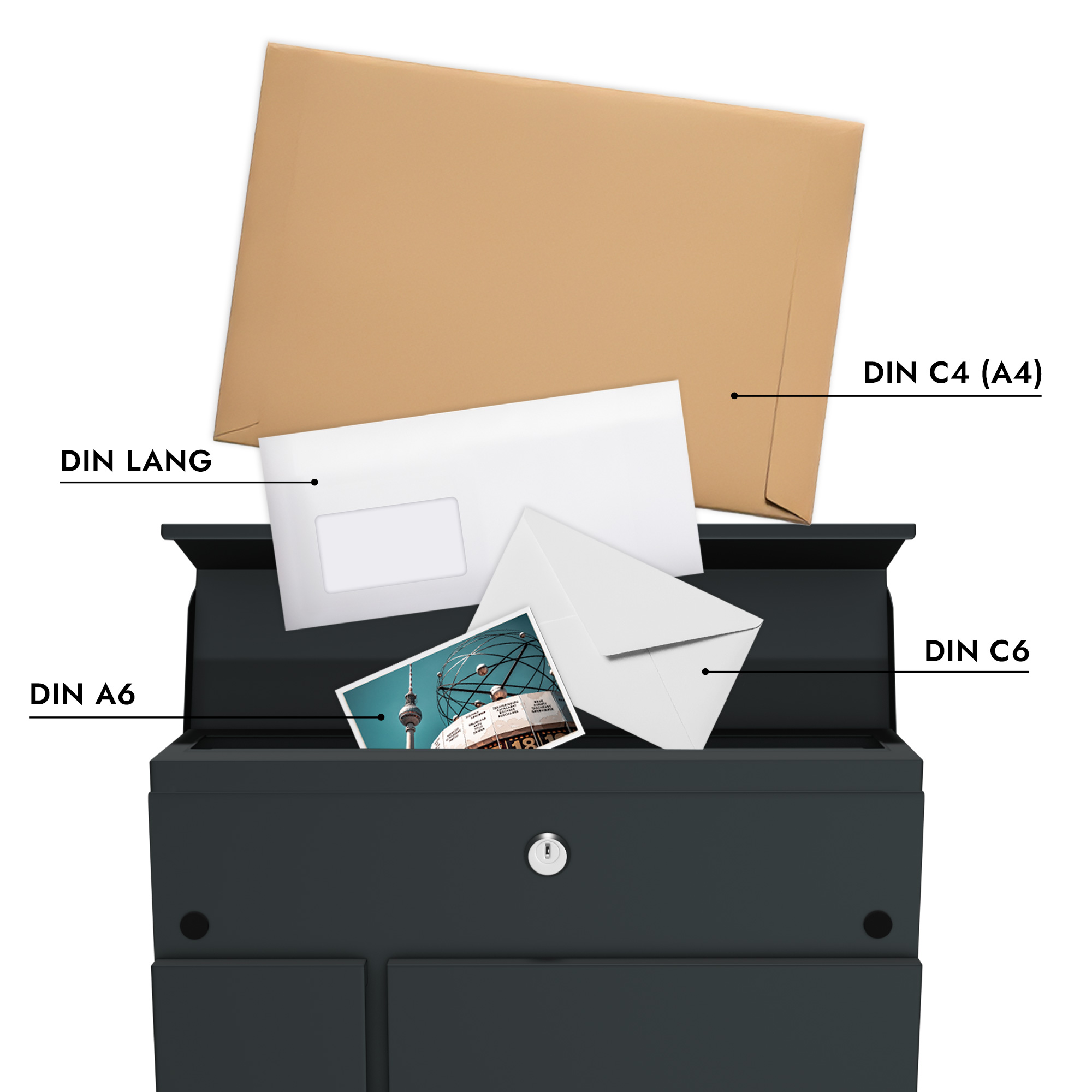 - Durchdachte Ausstattung – Integriertes Zeitungsfach (Zeitungsrolle) für trockene und ordentliche Aufbewahrung sowie abschließbare Postbox mit zwei Schlüsseln für hohe Sicherheit