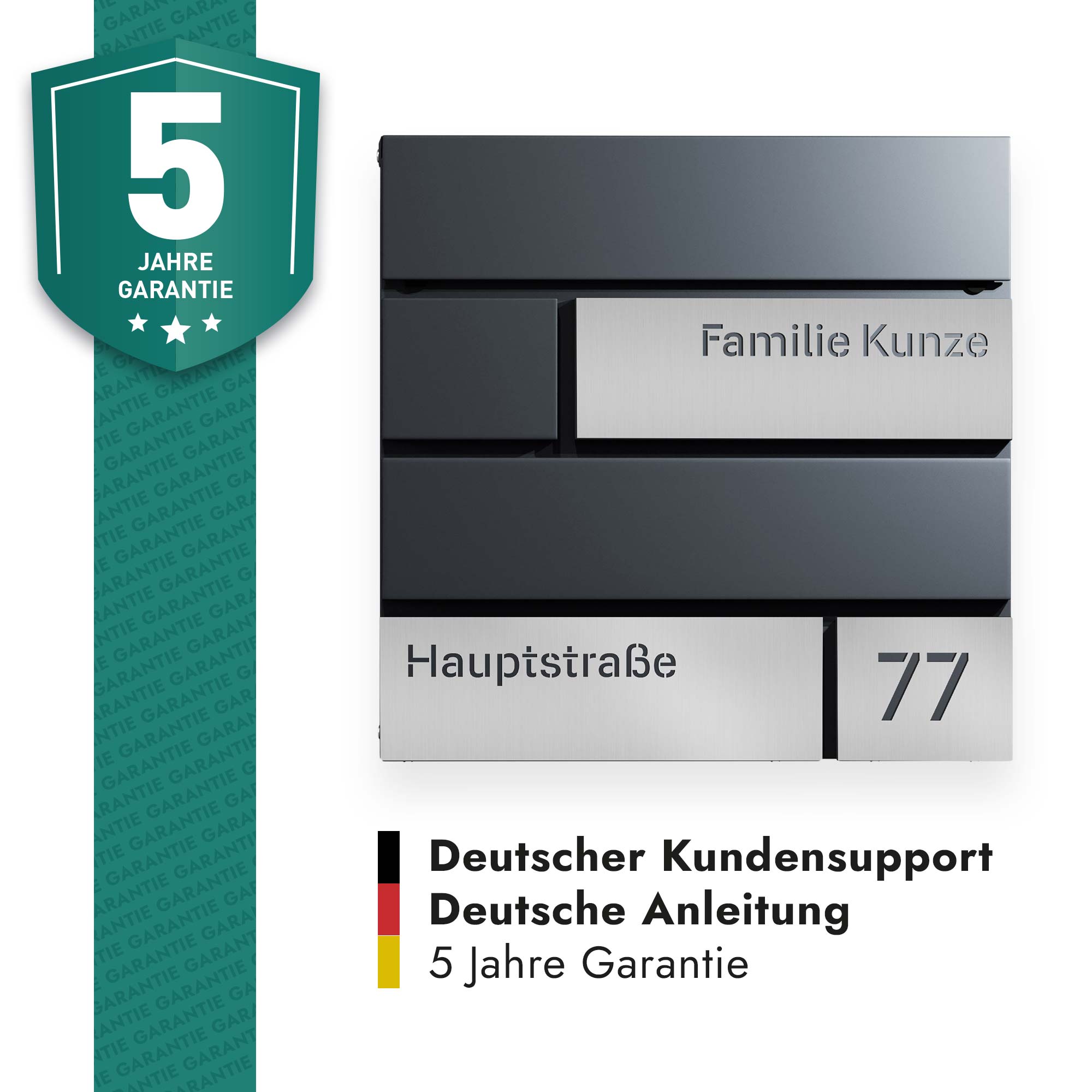 Briefkasten Viborg Anthrazit (RAL7016) Zinkstahl mit Zeitungsfach - personalisiert mit Namensschild, Hausnummer und Straßennamen als Gravur