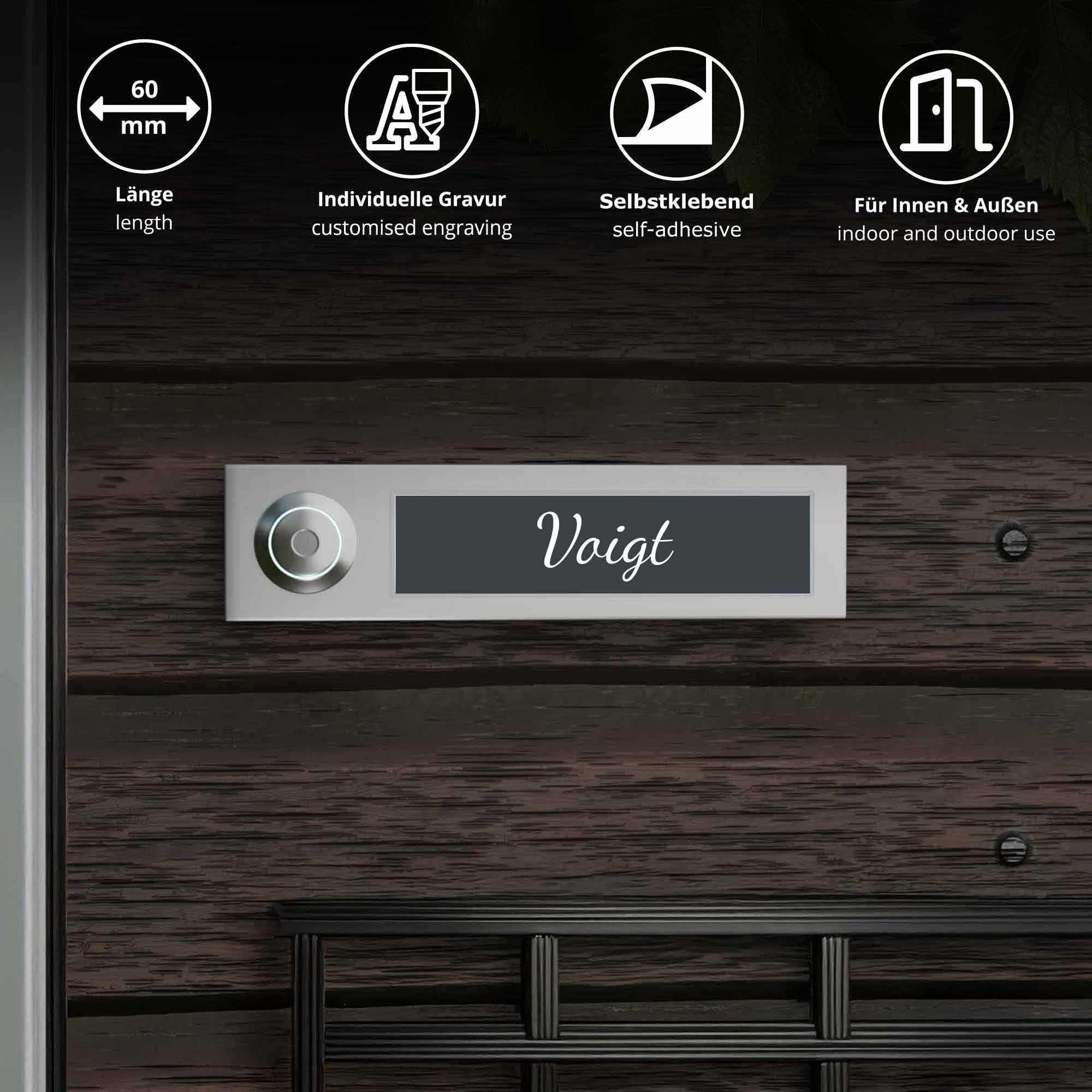 Klingelschild Kongsberg Anthrazitgrau mit Gravur - personalisiertes Türschild 60x15mm