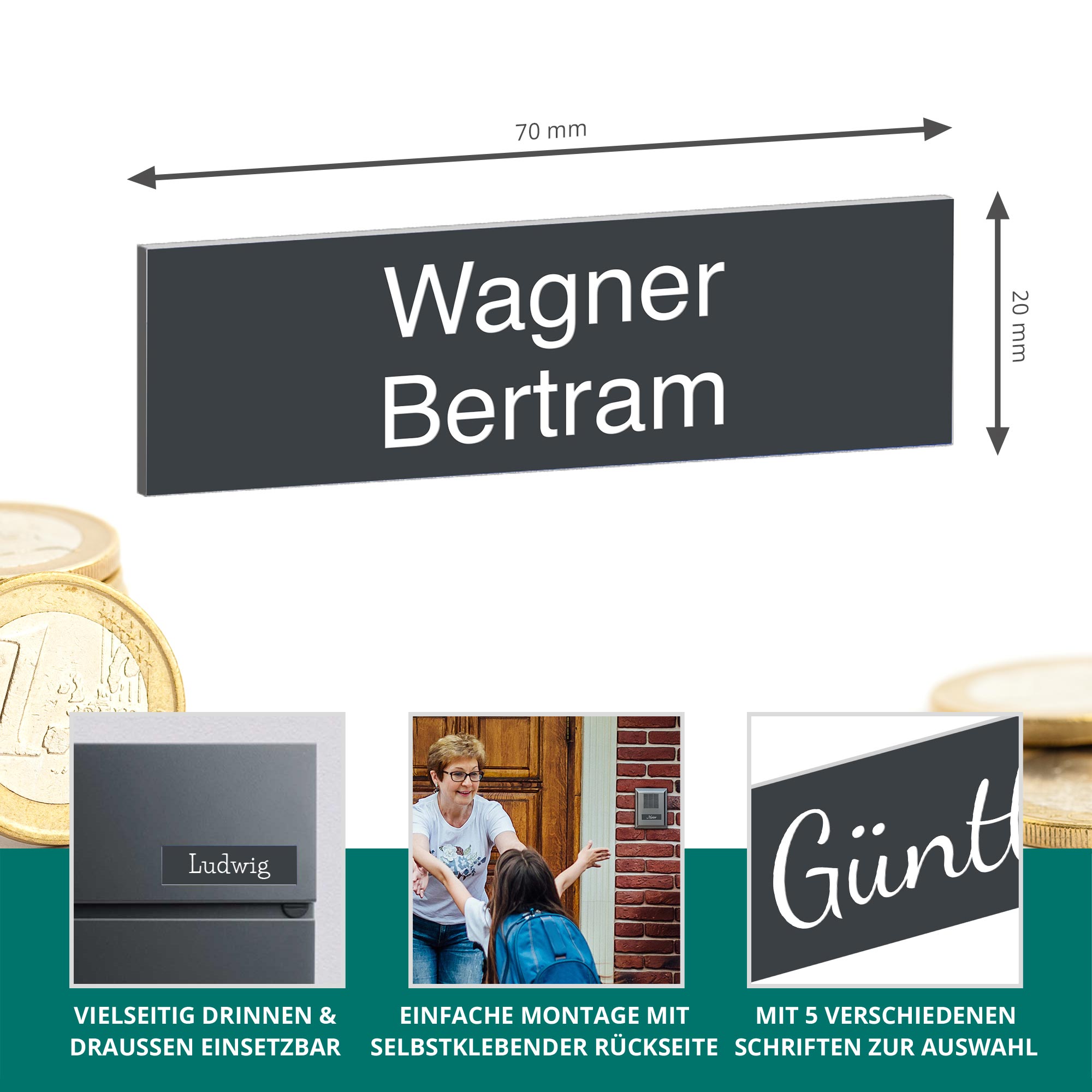 - Personalisiert mit Gravur – Individuell gestaltbar mit Name, Hausnummer oder Wunschtext in 5 Schriftarten